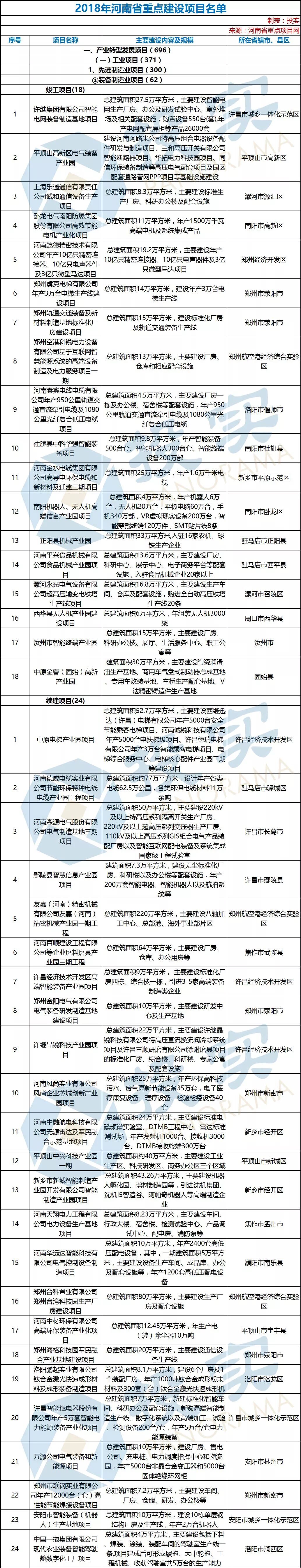 1月25日,河南省重點項目建設(shè)網(wǎng)公布2018年河南省重點建設(shè)項目名單,名單共列項目1090個,總投資2.97萬億元,2018年計劃完成投資8125億元,涵蓋了產(chǎn)業(yè)轉(zhuǎn)型發(fā)展、創(chuàng)新驅(qū)動、基礎(chǔ)設(shè)施、新型城鎮(zhèn)化、生態(tài)環(huán)保、民生和社會事業(yè)六大領(lǐng)域,其中計劃竣工項目162個、續(xù)建項目524個、計劃新開工項目387個、前期項目17個。