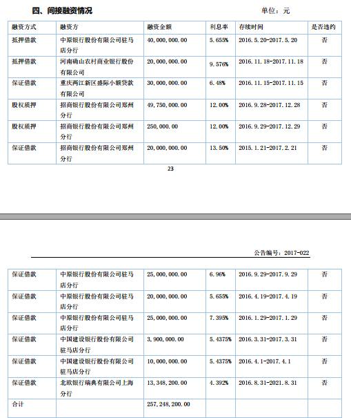 2016年度,6家銀行通過抵押借款、股權(quán)質(zhì)押、保證借款等方式為龍鳳山提供借款2.27億元。